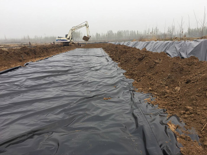 4、HDPE土工膜在铺设中,应尽量避免产生人为的折皱。铺设HDPE土工膜时,应根据当地气温变化幅度和HDPE土工膜的性能要求,预留出温度变化引起的伸缩变形量,另外根据现场地形和土工膜铺设的情况应预留土工膜的伸缩量,以适应地基不均匀沉降。
